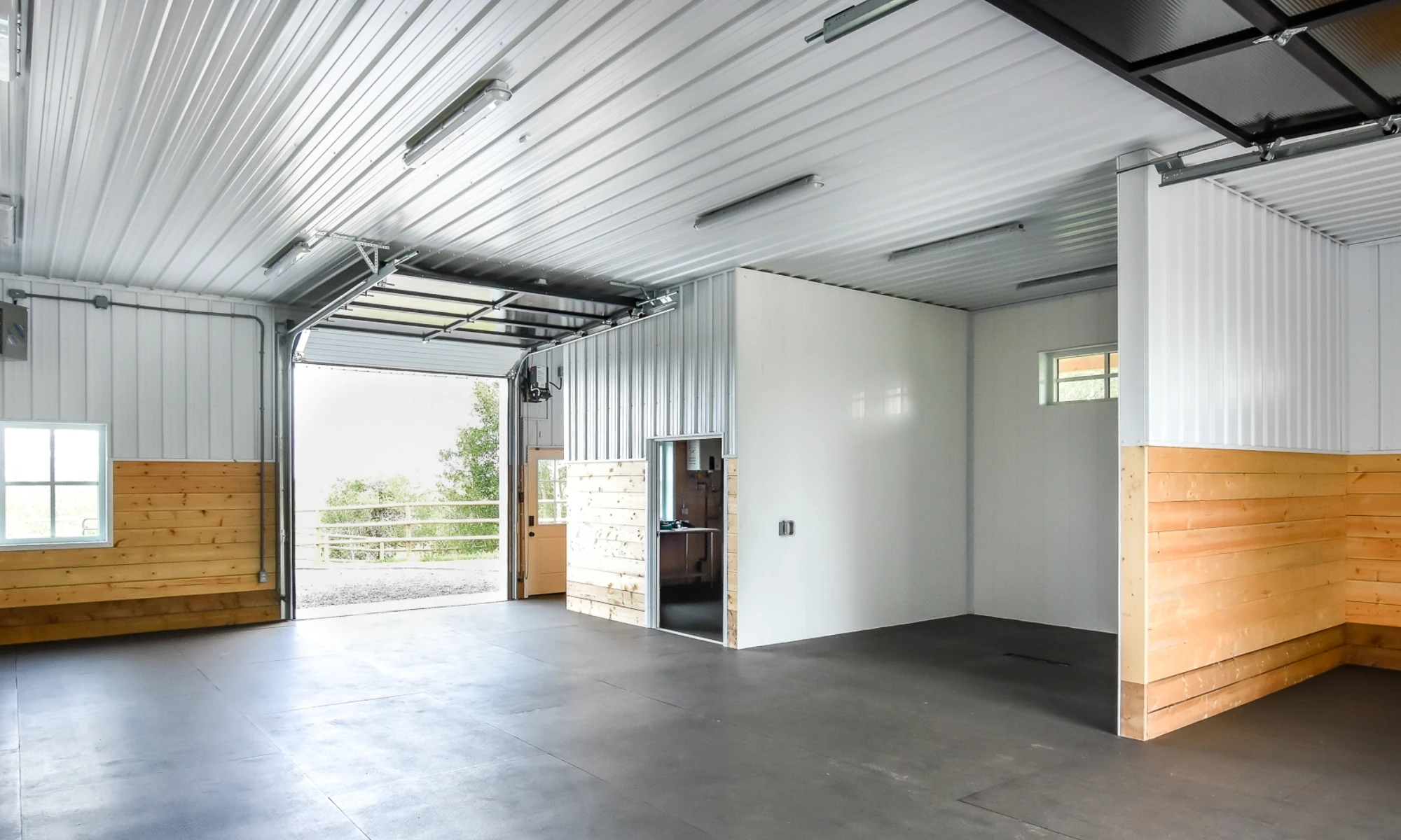 Finished interiors, complete with insulation, metal cladding, and concrete flooring, provide a clean, safe, and functional space for both riders and animals. The addition of kick walls protects both your building and your horses by preventing injury and damage during daily use.