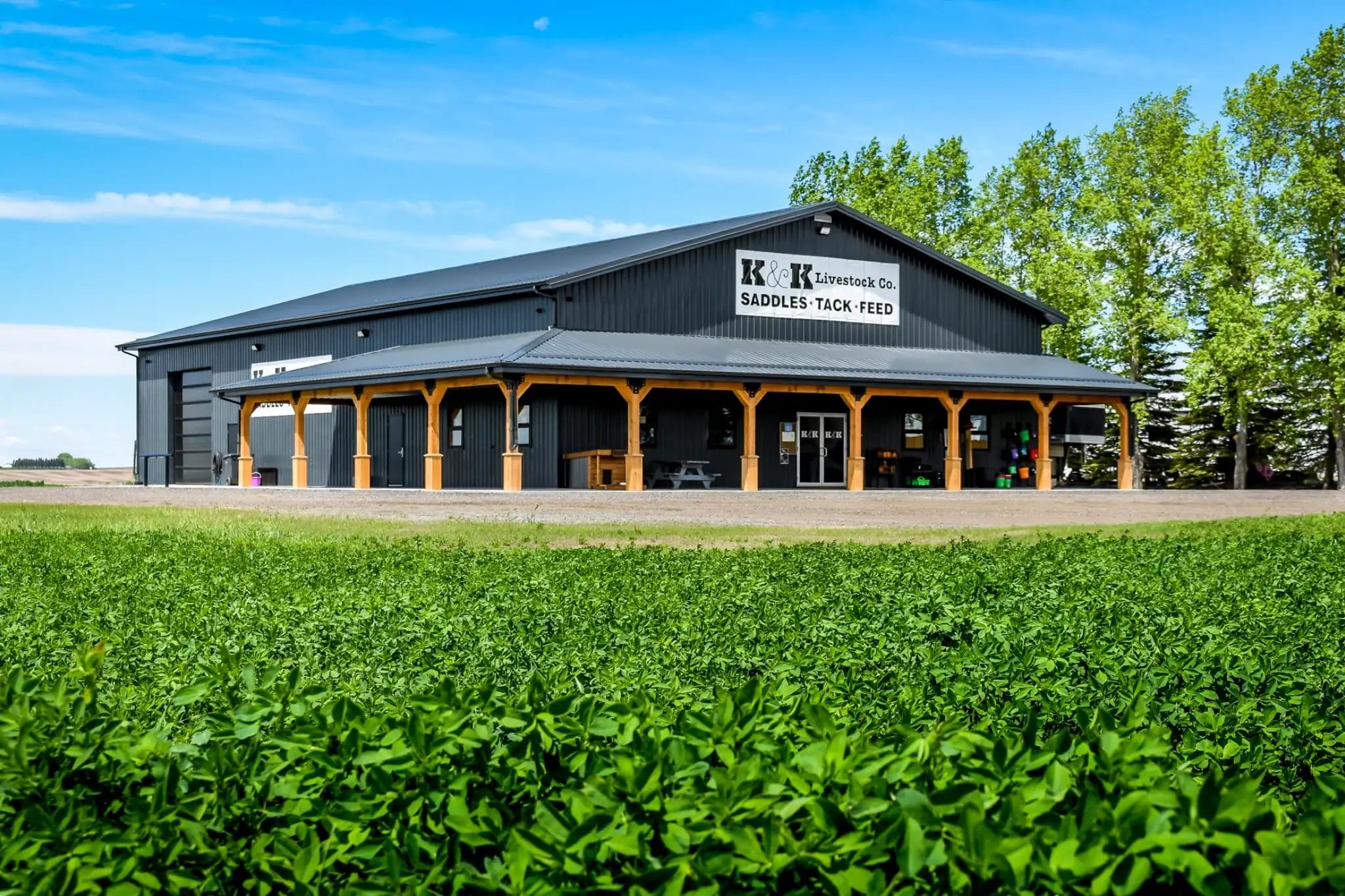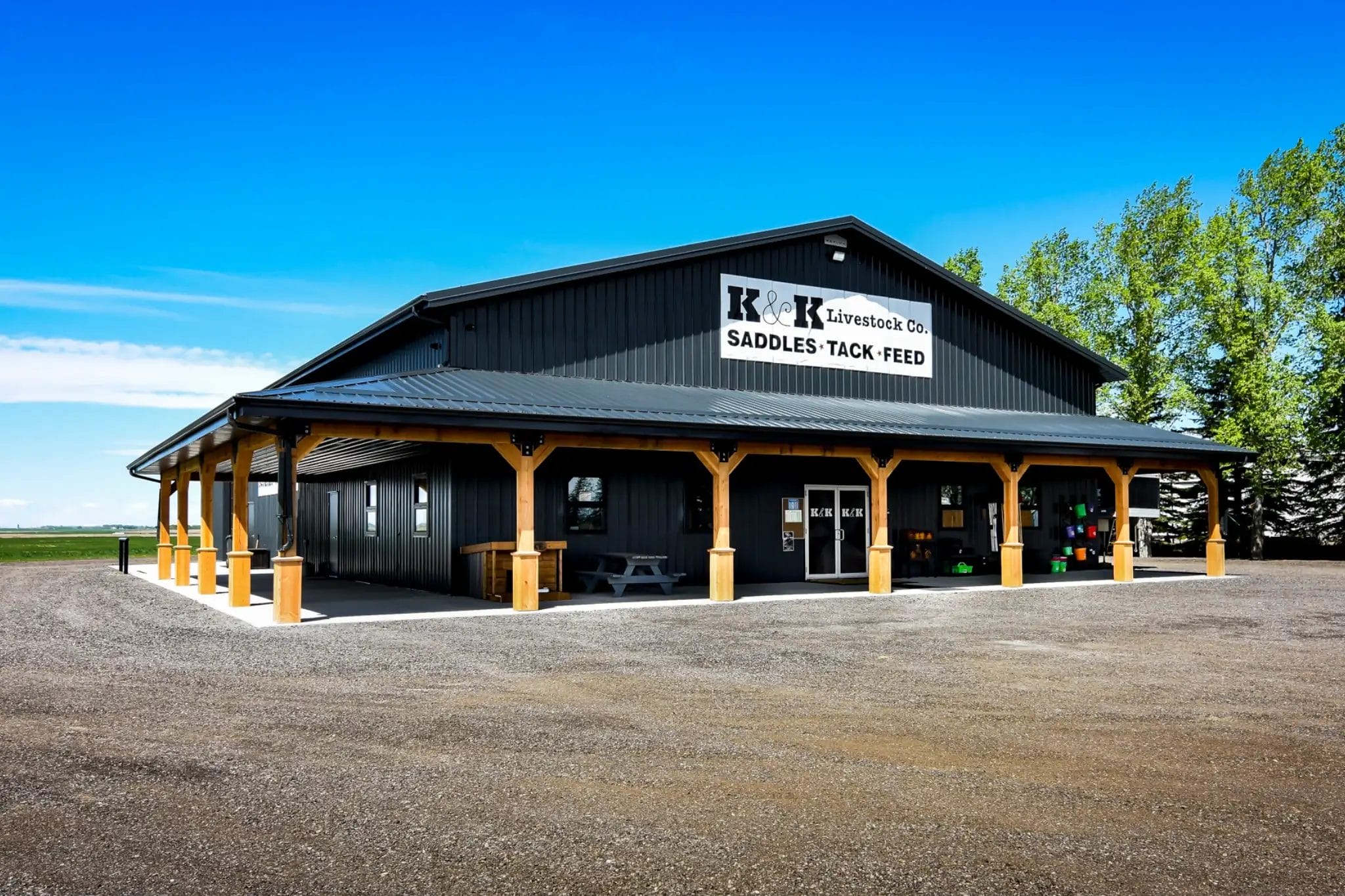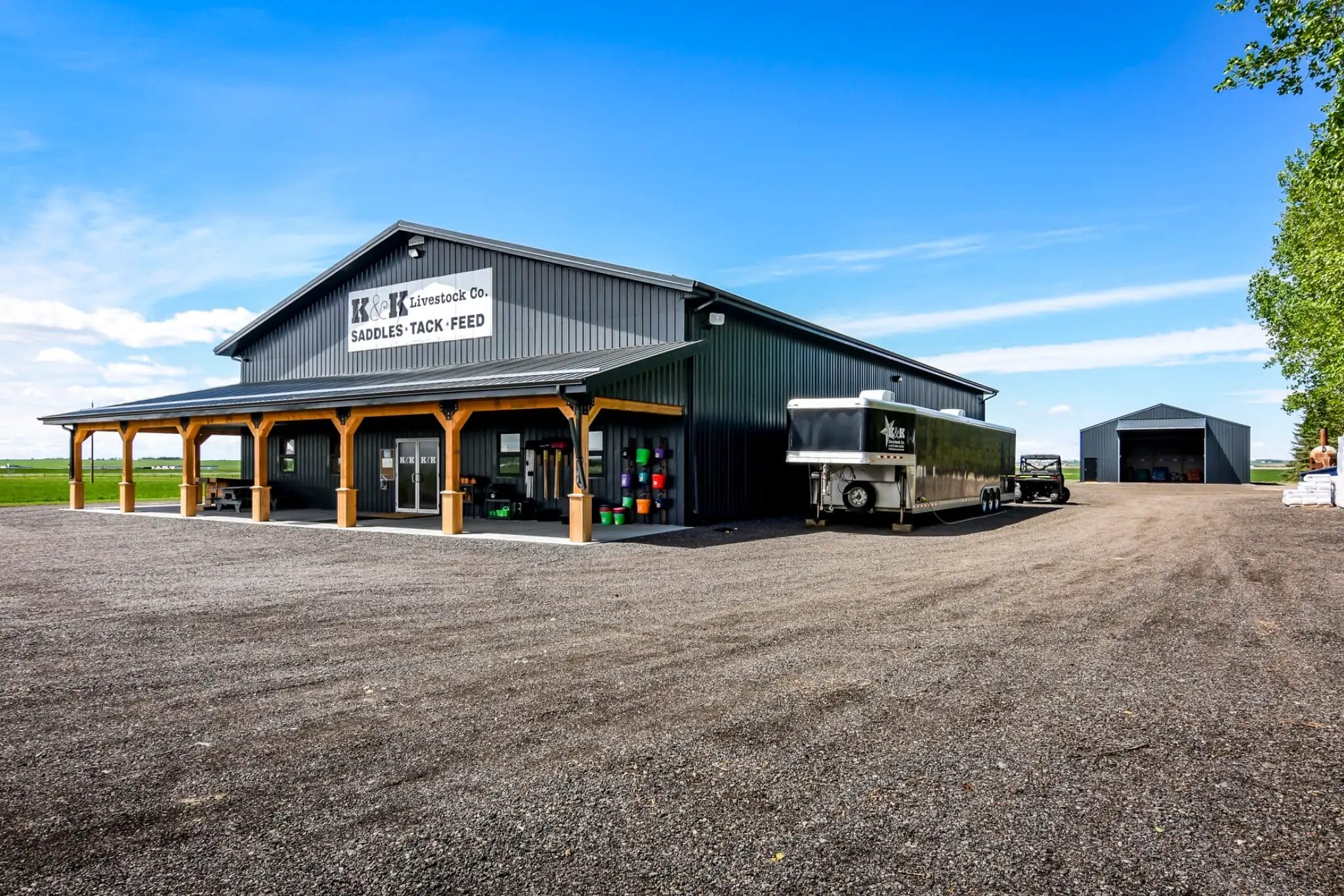 With a growing business, Sheldon at K&K Livestock needed a space to accommodate his evolving needs. Adding three post frame buildings to the property gave Sheldon a rustic, welcoming retail space and two functional storage buildings to support his business.