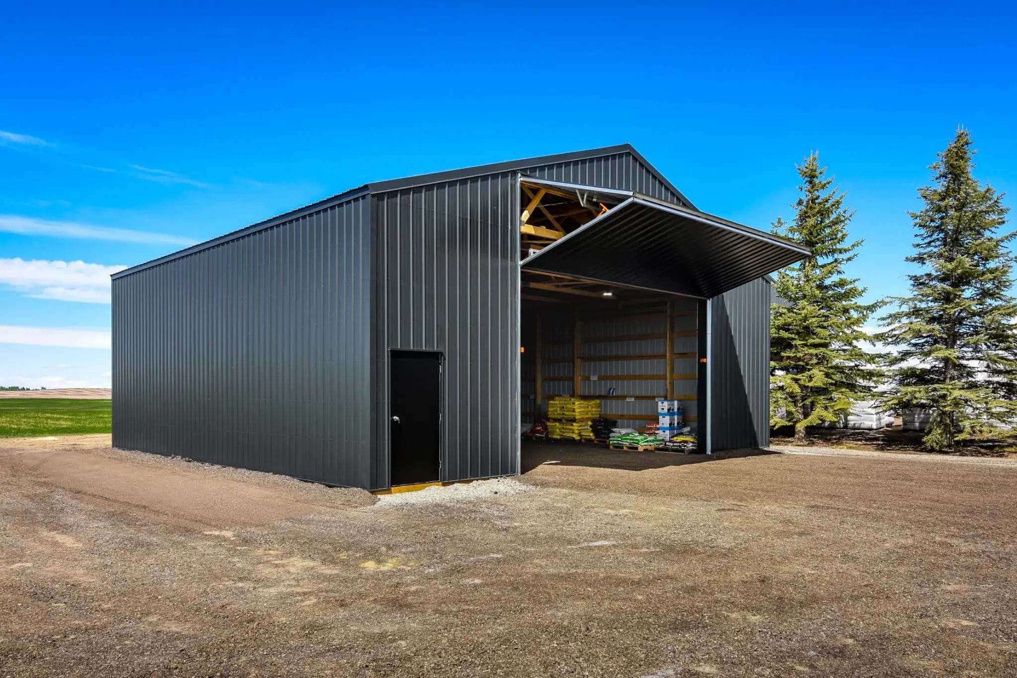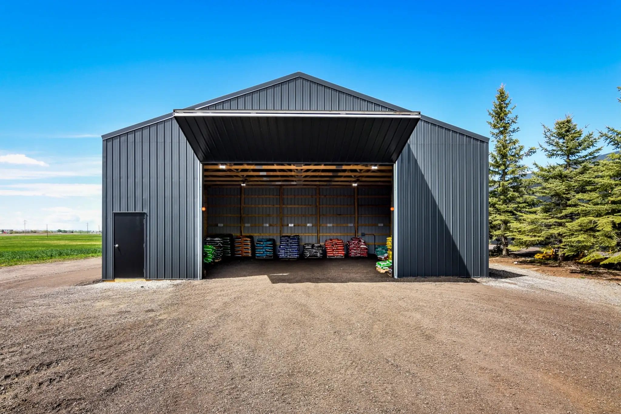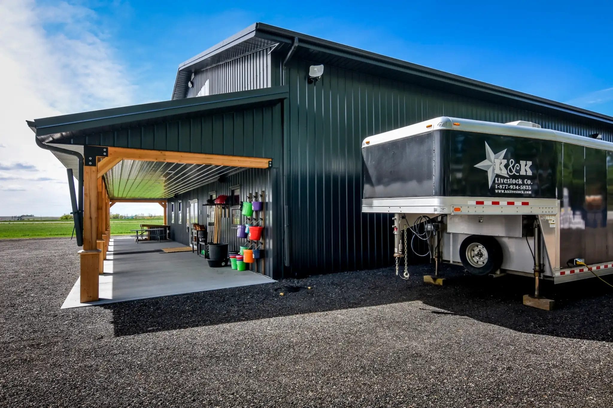 With a growing business, Sheldon at K&K Livestock needed a space to accommodate his evolving needs. Adding three post frame buildings to the property gave Sheldon a rustic, welcoming retail space and two functional storage buildings to support his business.