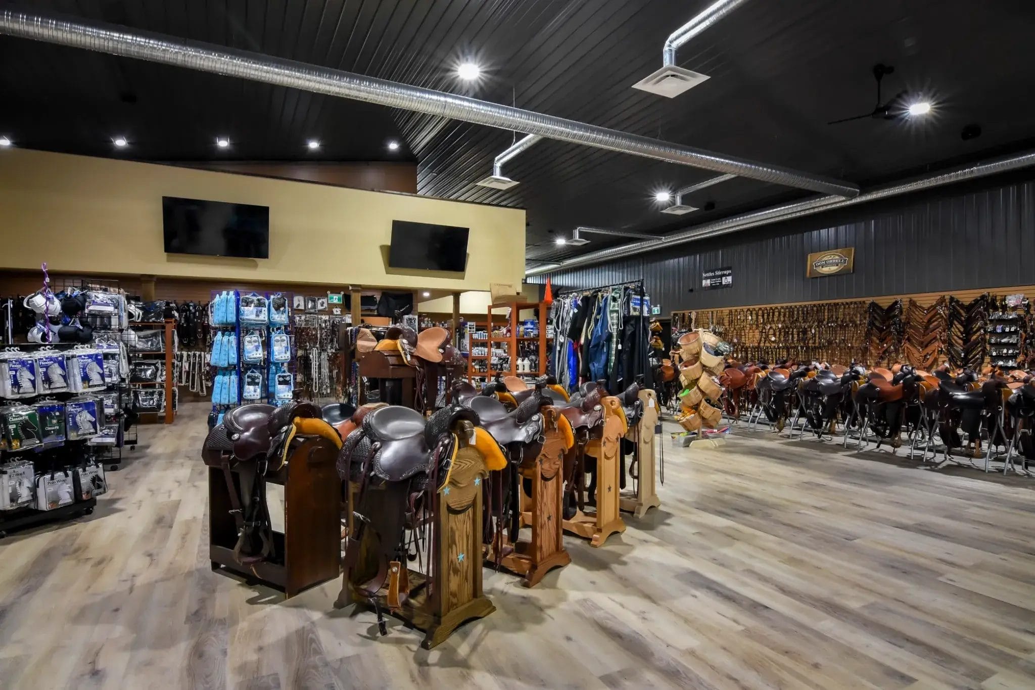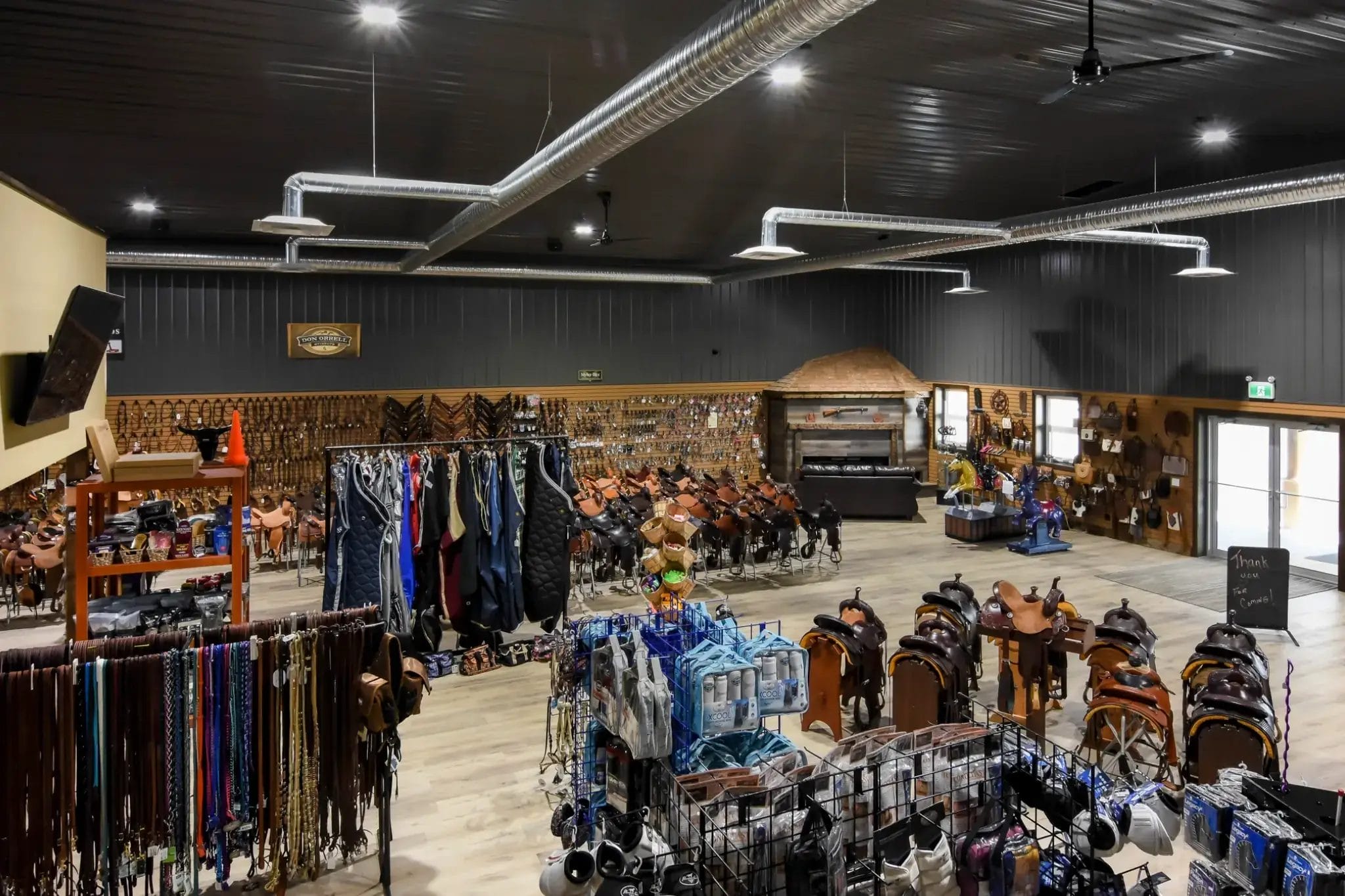 The design of K&K Livestock’s retail building focuses on a comfortable customer experience with a finished interior and features for a rustic feel.