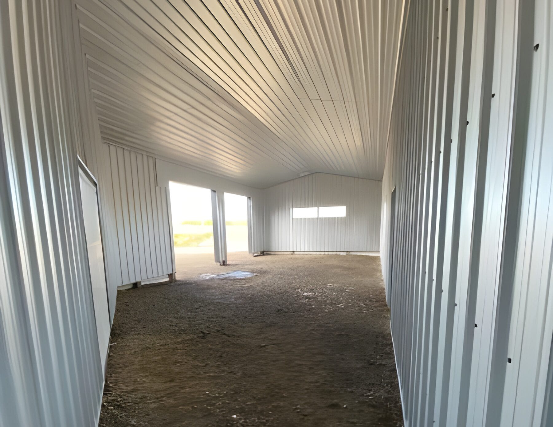 White metal walls and ceiling reflect natural light from strategically placed windows to create a bright and well-lit environment. With windows on the rear and side walls, plus window panels in the overhead doors, the space benefits from natural light throughout the day.